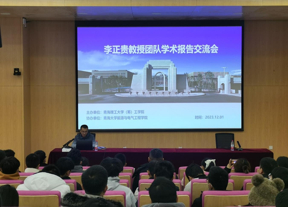 为推动青海理工大学(筹)开展本科教学(实验)实体化运行工作,工学院于 2023 年 12 月 1 日下午在我校进行学会报告活动。活动邀请工学院李正贵教授、西华大学教师闫盛楠、哈尔滨工业大学博士杨彪作专题学术报告,并与青海大学能源与电气工程学院 40 位研究生及工学院教师进行深入交流探讨,报告会由院长助理王生军主持。